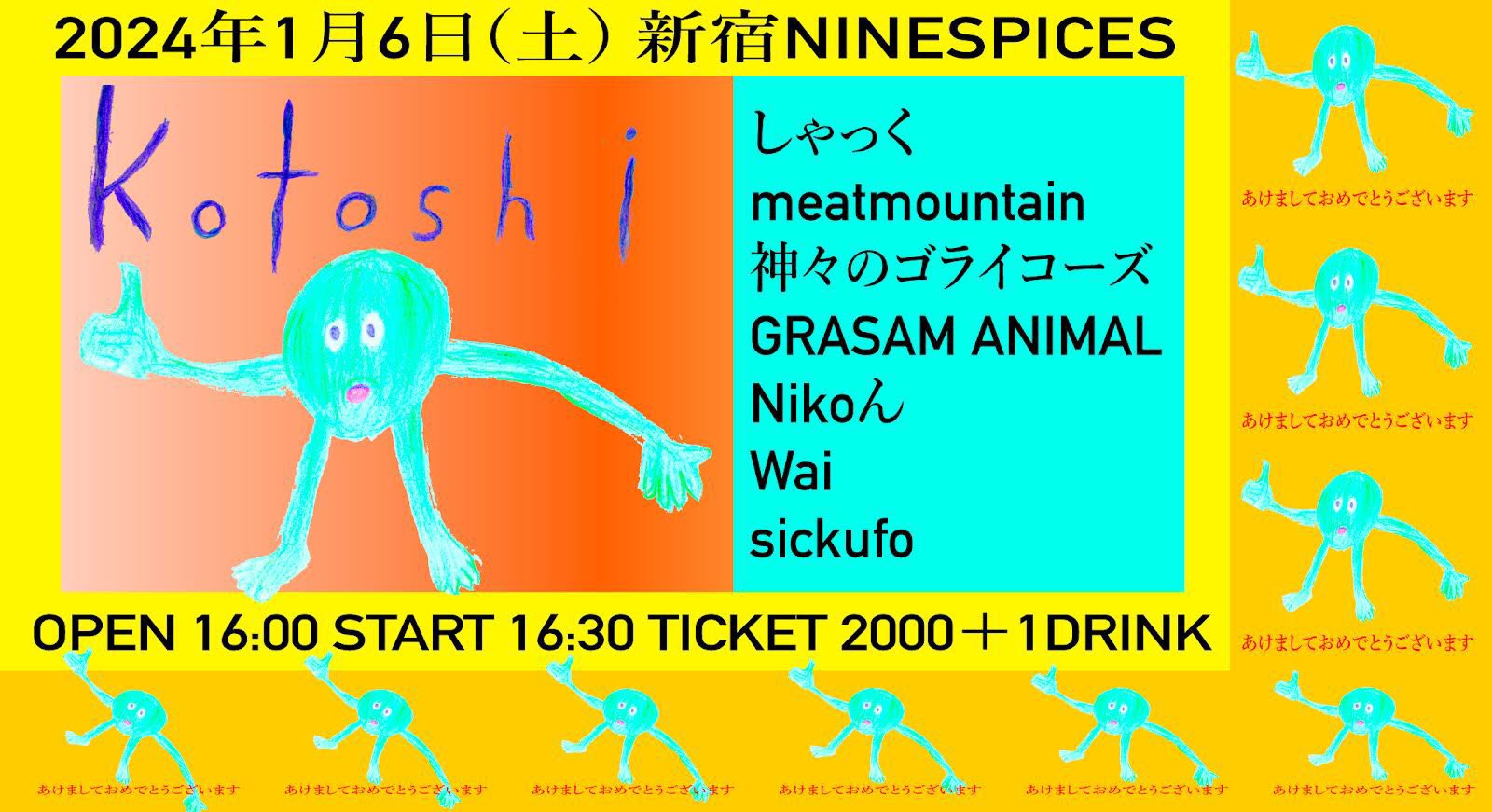 2024/01/06【しゃっく × NINE SPICES 新年会 “kotoshi” 】新宿NINE SPICES live-ufo 2023.12.252024.02.08 しゃっく × NINE SPICES 新年会 “kotoshi” 𝙨𝙞𝙘𝙠𝙪𝙛𝙤 (@sicufo) on X20240106新宿NINE SPICES⑳㉔しゃっく×NINE SPICES新年会"kotoshi"act/しゃっくmeatmountain神々のゴライコーズGRASAM ANIMALNikoんWaisickufoOPEN 16:30 /...