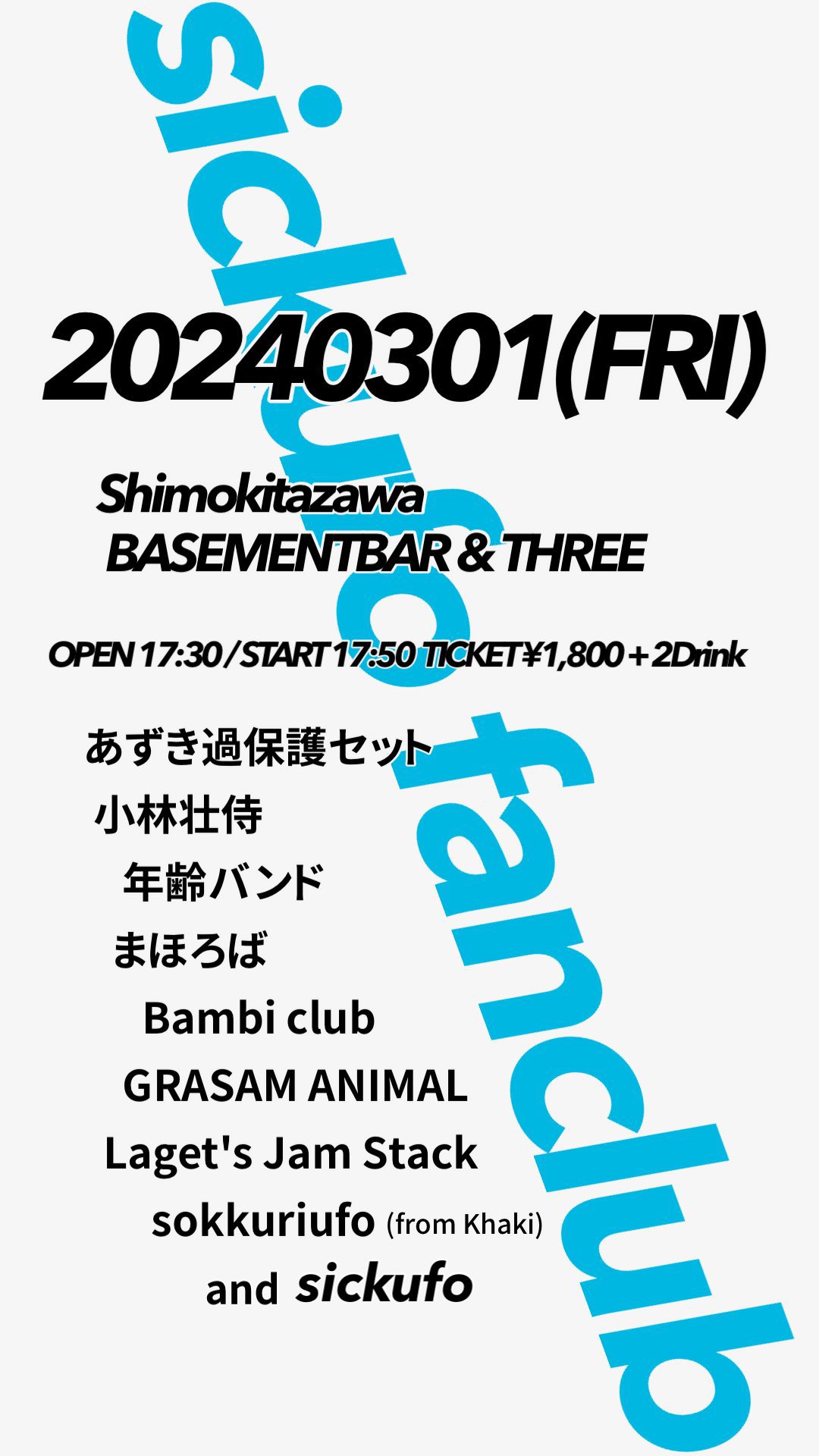 2024/03/01【sickufo fanclub】下北沢BASEMENTBAR&下北沢THREE live-ufo 2024.02.29 sickufo fanclub https://twitter.com/sicufo/status/1752605333057642941