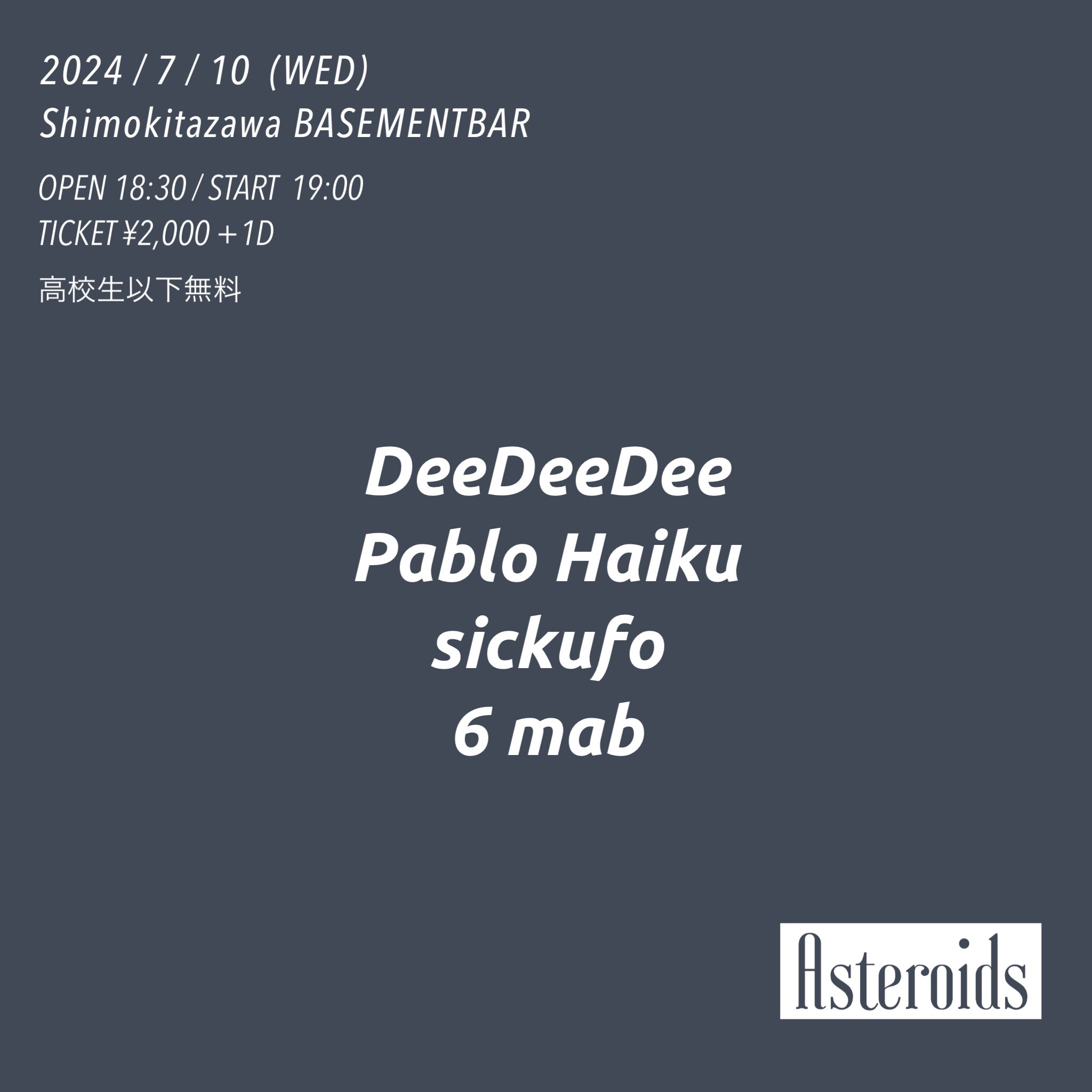 2024/07/10【Asteroids】下北沢BASEMENTBAR live-ufo 2024.05.302024.06.21 Asteroids 𝙨𝙞𝙘𝙠𝙪𝙛𝙤 (@sicufo) on X20240710下北沢BASEMENTBAR∓ Asteroids ∓act/DeeDeeDeePablo Haikusickufo6 mabOPEN 18:30 / START 19:00TICKET ¥2,000-(+1D)高校生以下無...