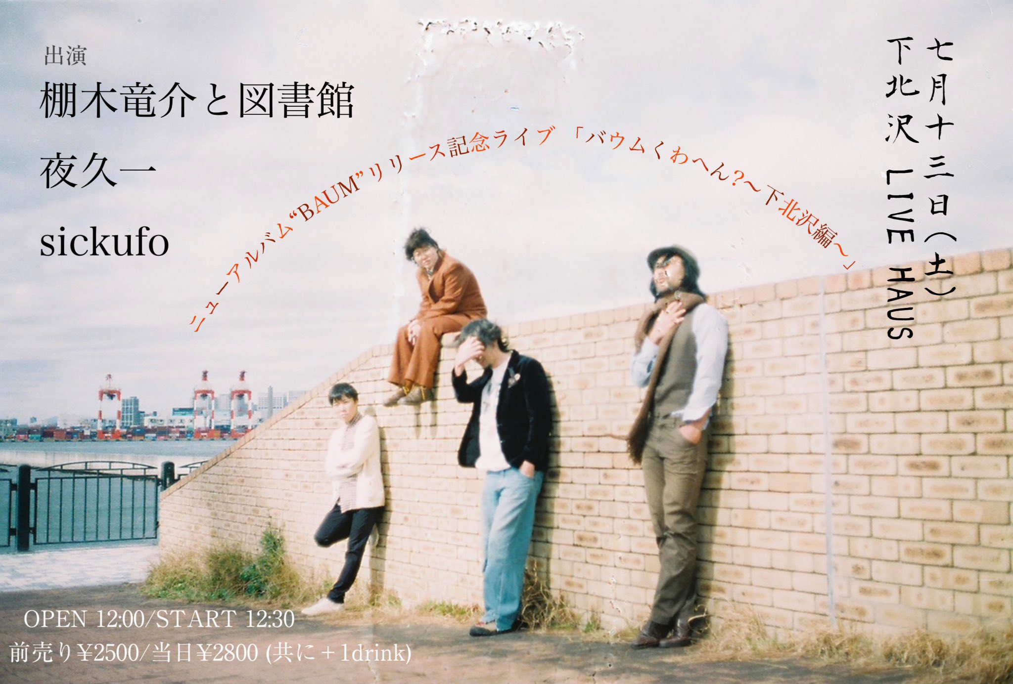 2024/07/13【ニューアルバム “BAUM” リリース記念ライブ『バウムくわへん? 〜下北沢編〜』】下北沢 LIVEHAUS live-ufo 2024.05.312024.06.21 ニューアルバム “BAUM” リリース記念ライブ『バウムくわへん? 〜下北沢編〜 𝙨𝙞𝙘𝙠𝙪𝙛𝙤 (@sicufo) on X20240713下北沢 LIVE HAUS∂ ニューアルバム“BAUM”リリース記念ライブ「バウムくわへん?〜下北沢編〜」act/棚木竜介と図書館夜久一sickufoOPEN 12:00/START 12:30前売り¥2500/当日¥280...
