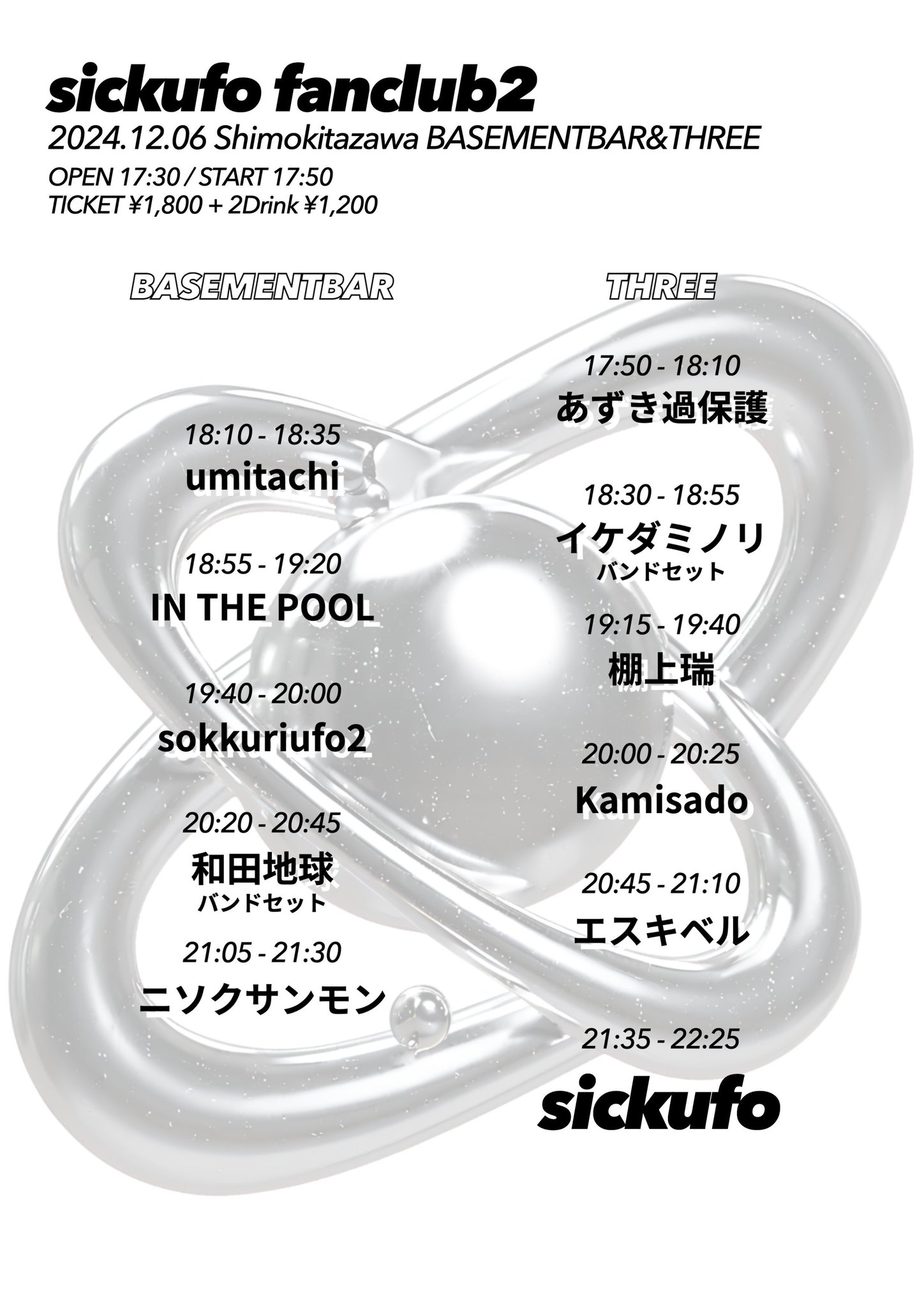 2024/12/06【sickufo fanclub 2】下北沢BASEMENTBAR&THREE live-ufo 2024.10.232024.12.03 sickufo fanclub 2 x.com Time table x.com