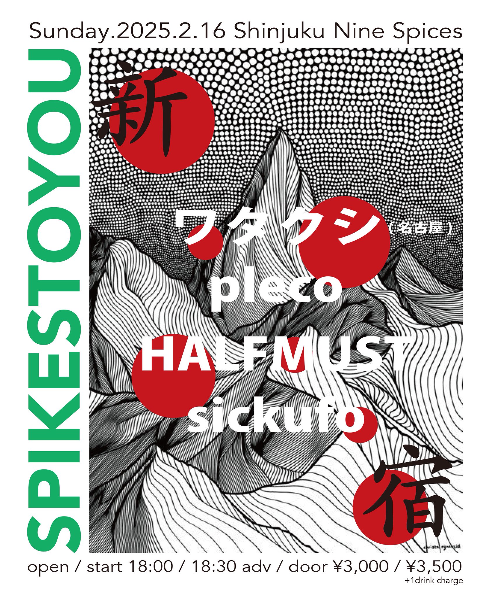 2025/02/16【NINE SPICES presents. SPIKES TO YOU】新宿NINE SPICES live-ufo 2025.01.192025.01.27 NINE SPICES presents. SPIKES TO YOU 𝙨𝙞𝙘𝙠𝙪𝙛𝙤 (@sicufo) on X20250216ⓃNINE SPICES presents「SPIKES TO YOU」新宿NINE SPICESActpleco ワタクシ (名古屋)sickufo HALFMUST OPEN / START 18:00 / 18:30A...